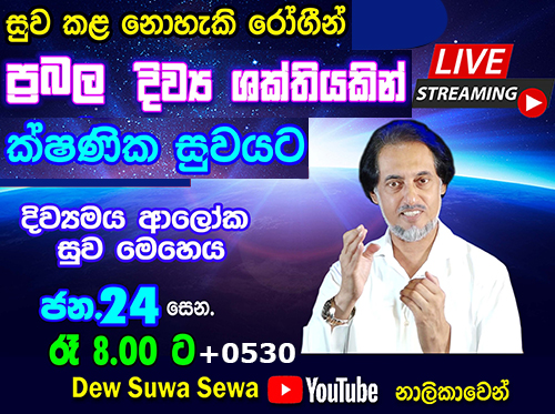 මීලඟ දෙව් සුව සේවා දුරස්ථ දිව්‍යමය ආලෝක සුව මෙහෙය : [ 2026-01-24  20:00 +0530 ]